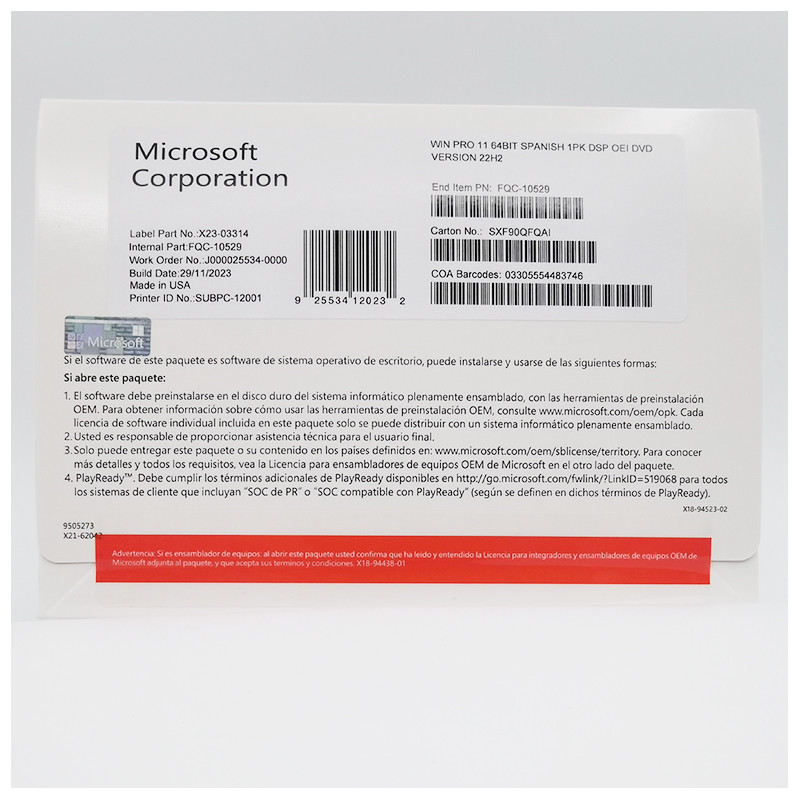 مفتاح ويندوز 11 برو OEM أصلي مع حزمة اللغة الإسبانية